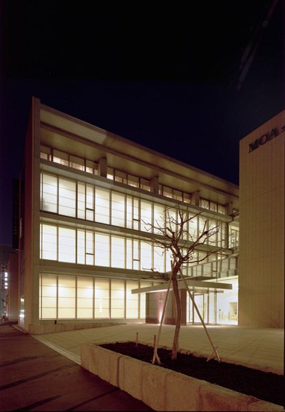 MOAインターナショナルの北海道における拠点施設で、オフィス、クリニック、ギャラリーなどがレイアウトされています。今回導入した新しい外皮システム=断熱障子は、従来の障子に空気層を設けることによって高断熱化を図り、昼間の開放性と夜間の熱損失の低減を両立させています。また和紙による透過光により、ガラス建築にはない柔らかなインテリア空間と親しみやすい外観デザインを実現しています。