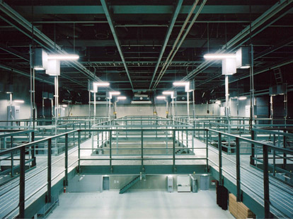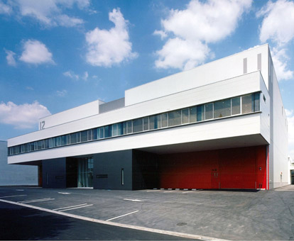 東宝スタジオ №11・12ステージは、撮影スタジオ2杯と小規模のスチールスタジオ、楽屋等の諸室から構成され、移動式バトンを始め、最新の動向を踏まえた附帯設備を併設しています。設計にあたっては、意匠・構造・設備のインテグレートを重要視し、架構や設備機器のレイアウトを効率的に行い、コンパクト、且つ、使い勝手の良いスタジオを実現しました。外観は、シンプルな形態にグラフィカルな配色・サインで特徴づけを行っています。