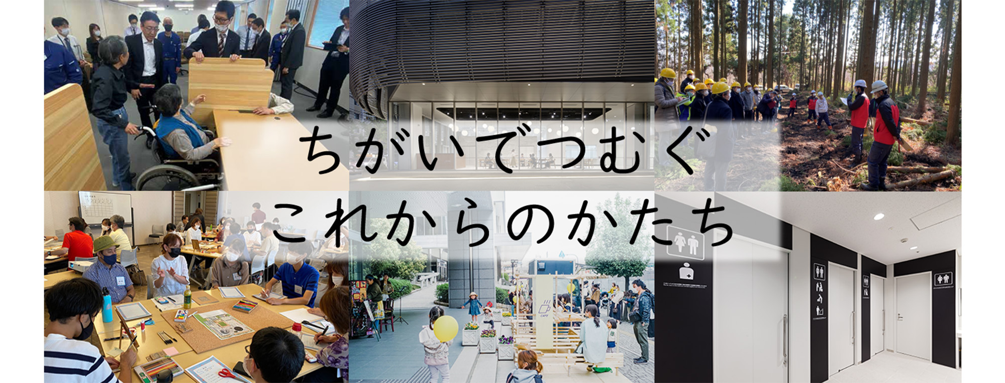 竹中工務店のインクルーシブデザイン 年齢や性別、国籍、障がいの有無などのちがいを越えて、ともに学び、さまざまな人々にとってやさしい建築やまちづくりを目指します。