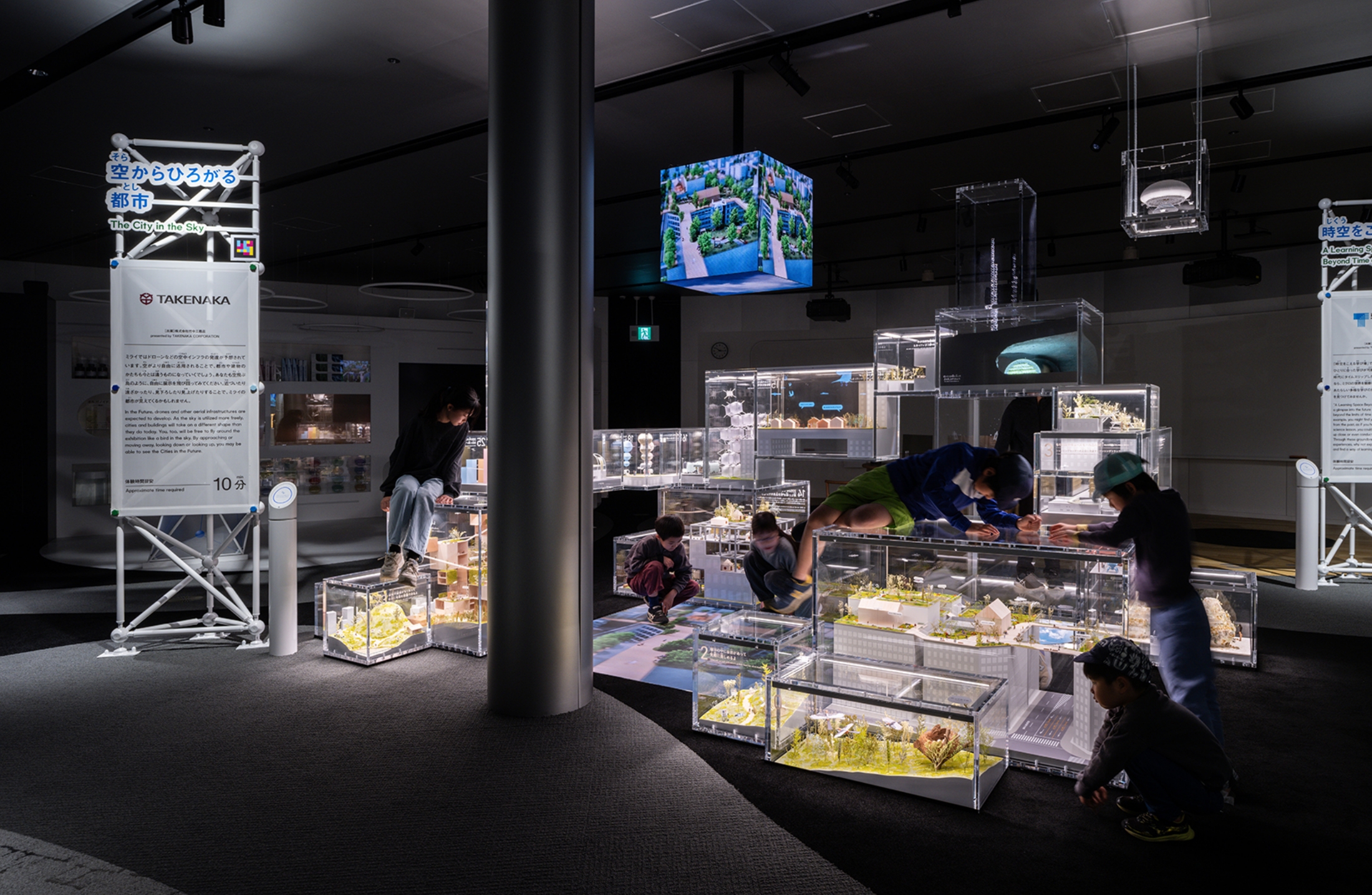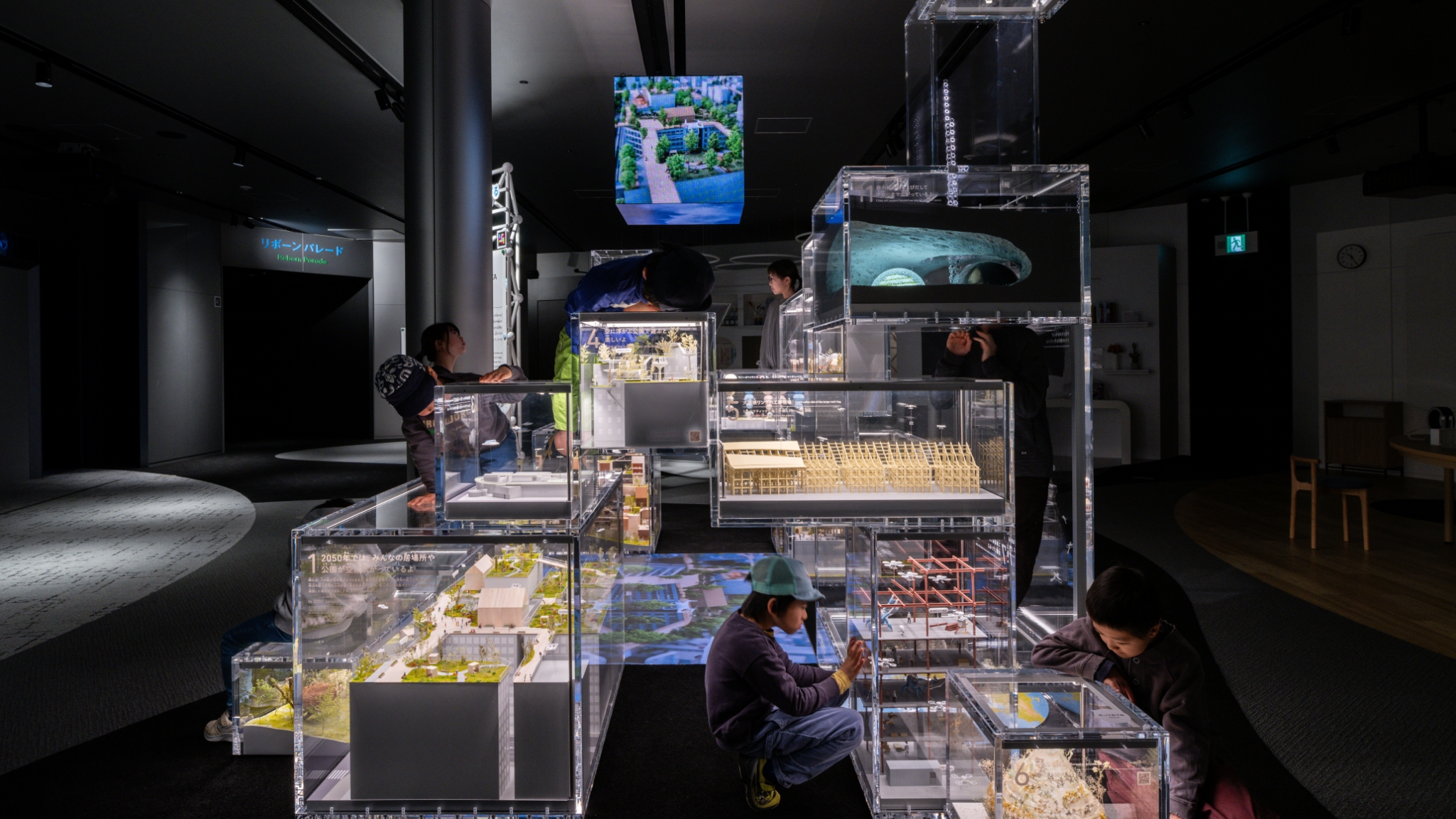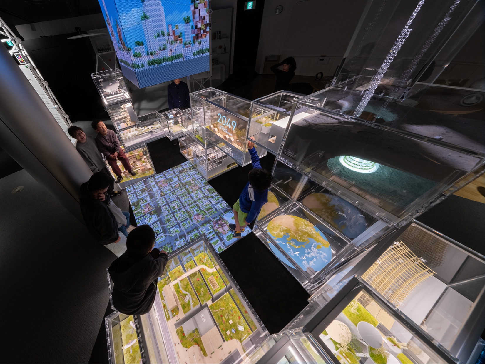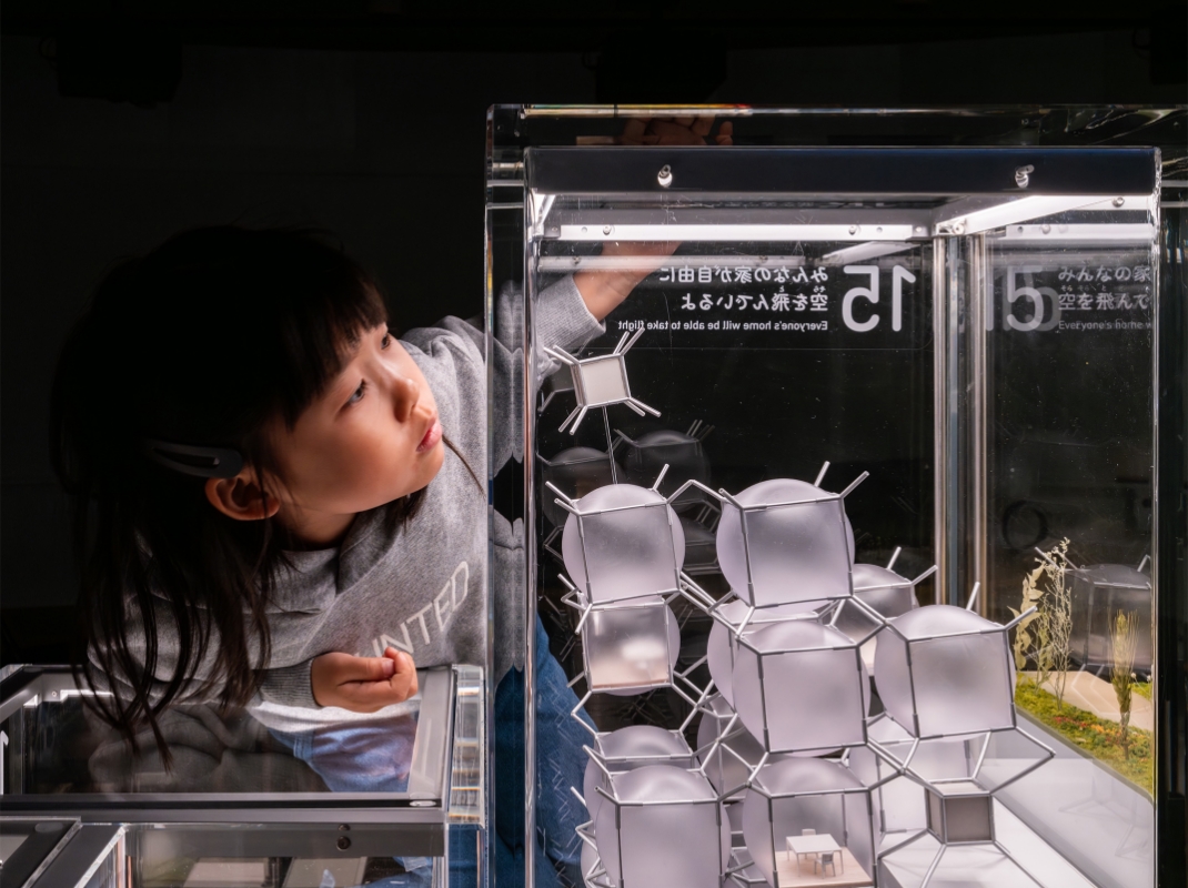 ボックスによじのぼって、展示全体を俯瞰する03 鳥の目線でミライの都市を体験する