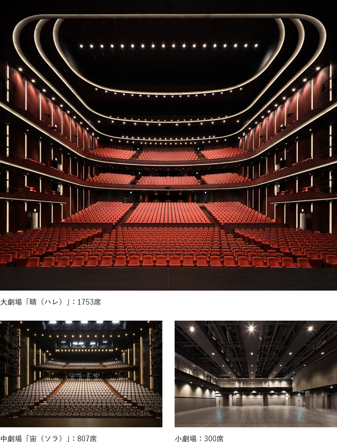 「ハレノワ」は中四国地方で初となる大・中・小3つの劇場や様々な練習室、ギャラリーを備え、文化芸術における市民参加・創造・発信の拠点として、多様な活動が開かれた空間で展開されます。演劇を中心にオペラにも対応可能なプロセニアム形式の大劇場、実験的な創作活動を中心とし、舞台との視距離を最小とした臨場感のある中劇場、自由度の高い平土間形式の小劇場の3つの劇場が市民の多様な目的に応え、新たな創造活動の拠点となります。