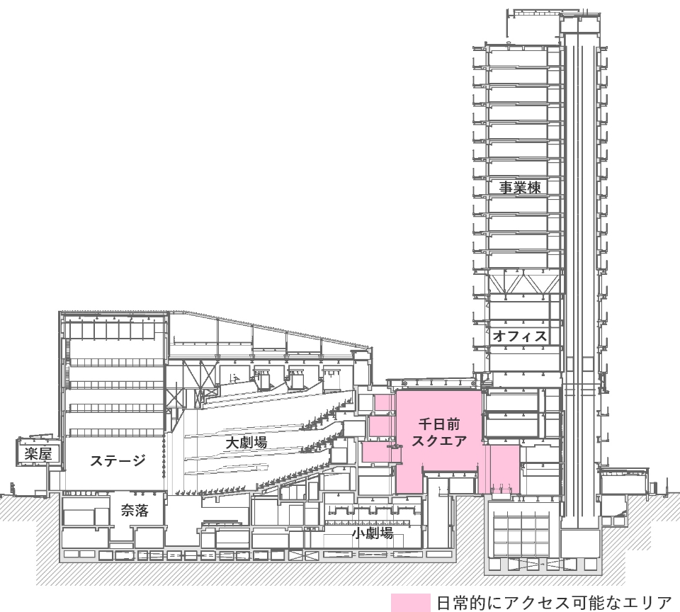 市民が日常的に使うことができるタワー低層部のスタジオ