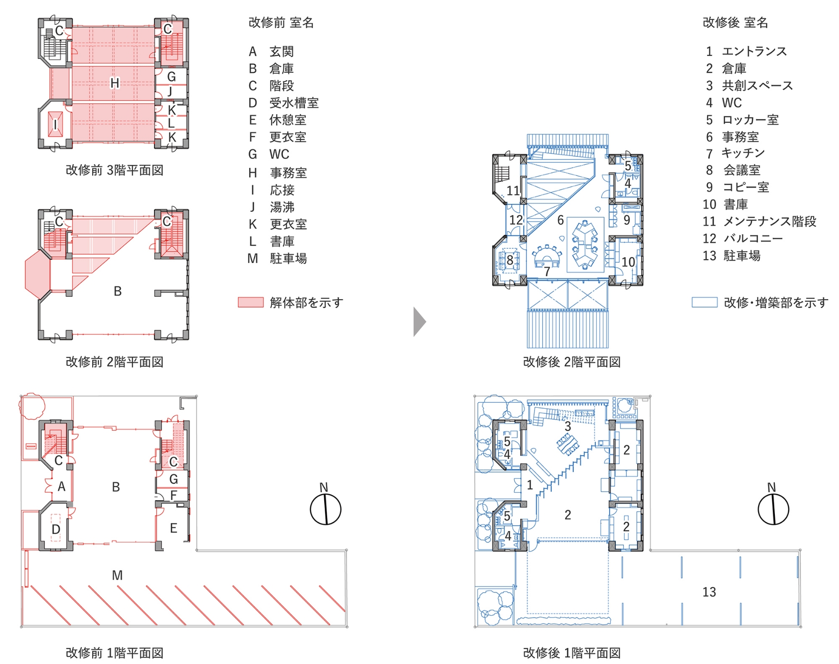 既存躯体を地形のようにとらえ、大胆な減築によって次世代に建築をつなぎ、人や地域にひらいていくことで長く愛され続ける建築を目指しました。