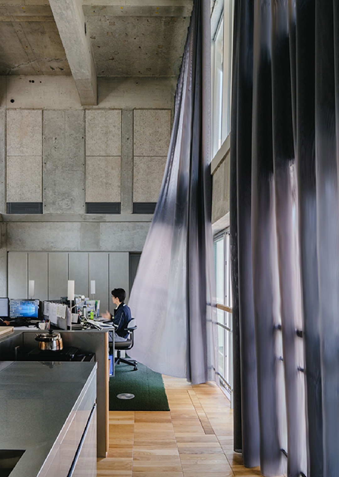 また、今回の改修でつくった大庇による日射制御や、高断熱化により省エネ性能を評価する数値ではBPI=0.59、BEI=0.40という極めて高い環境性能を獲得しました。新設したトップライトにより自然通風と自然採光を行い、中間期は空調なしで運用できています。エネルギーの利用効率を高めつつ、自然の力を積極的に活用して快適性を確保することができました。