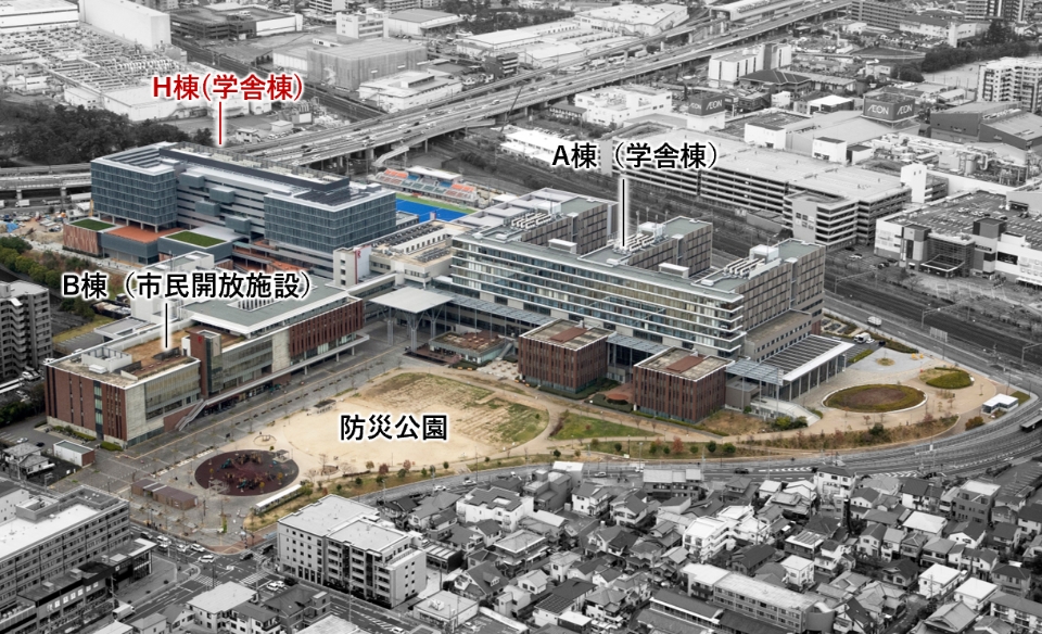 防災公園での賑わいを引き込み、キャンパスの共創の拠点としてH棟を計画
