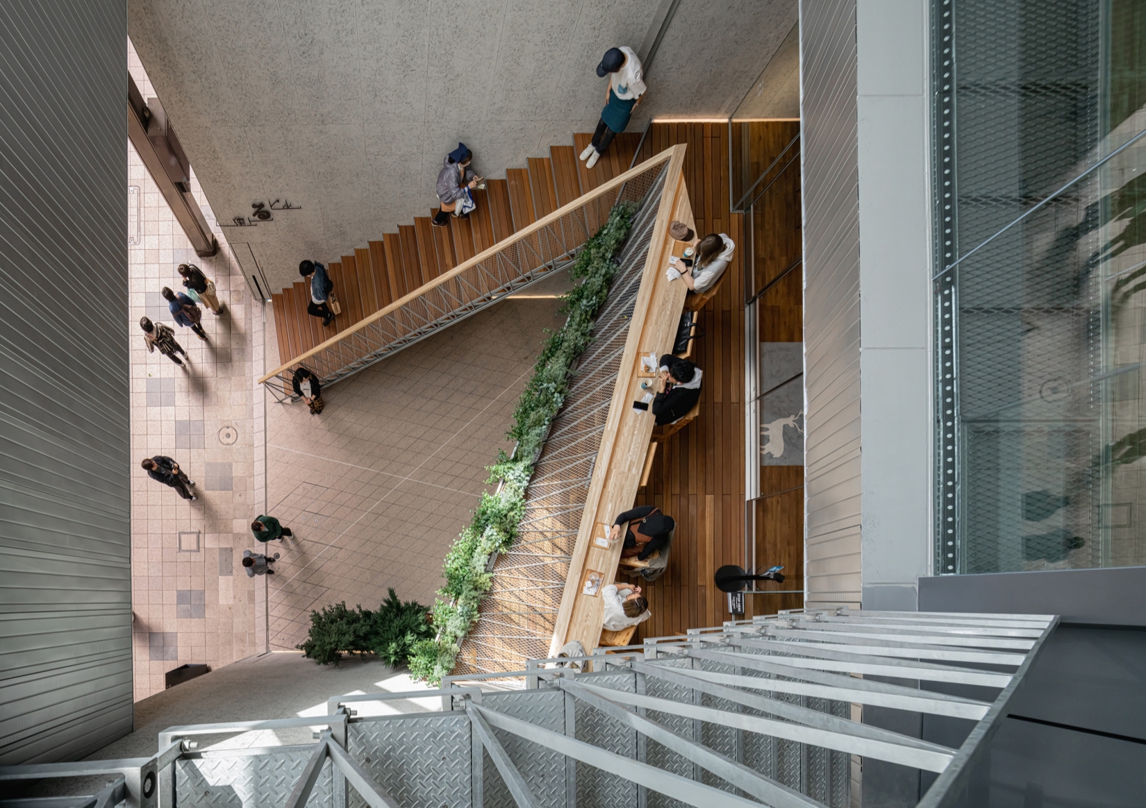 商店街の人波と空の広がりを同時に望める2階テラススペース