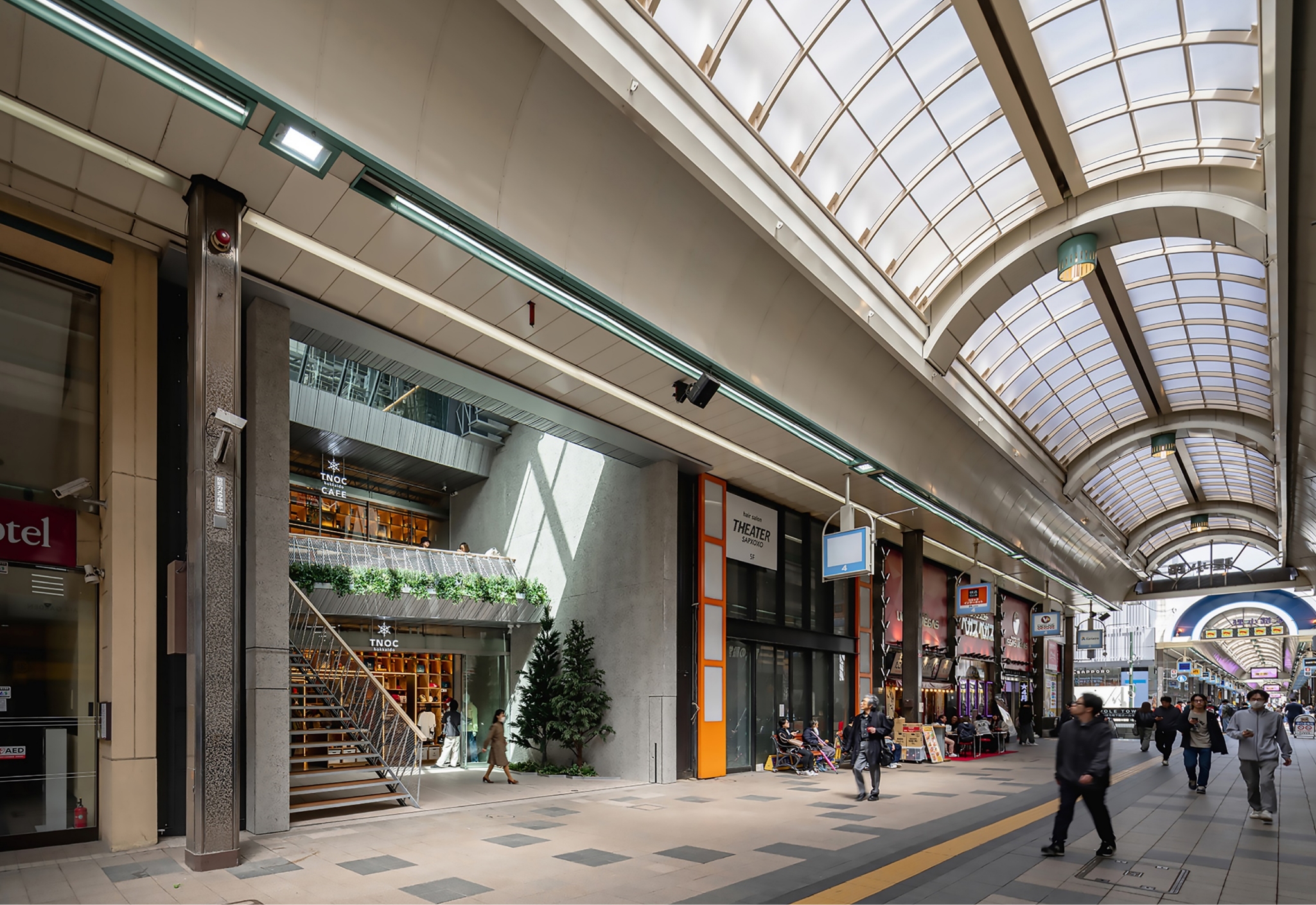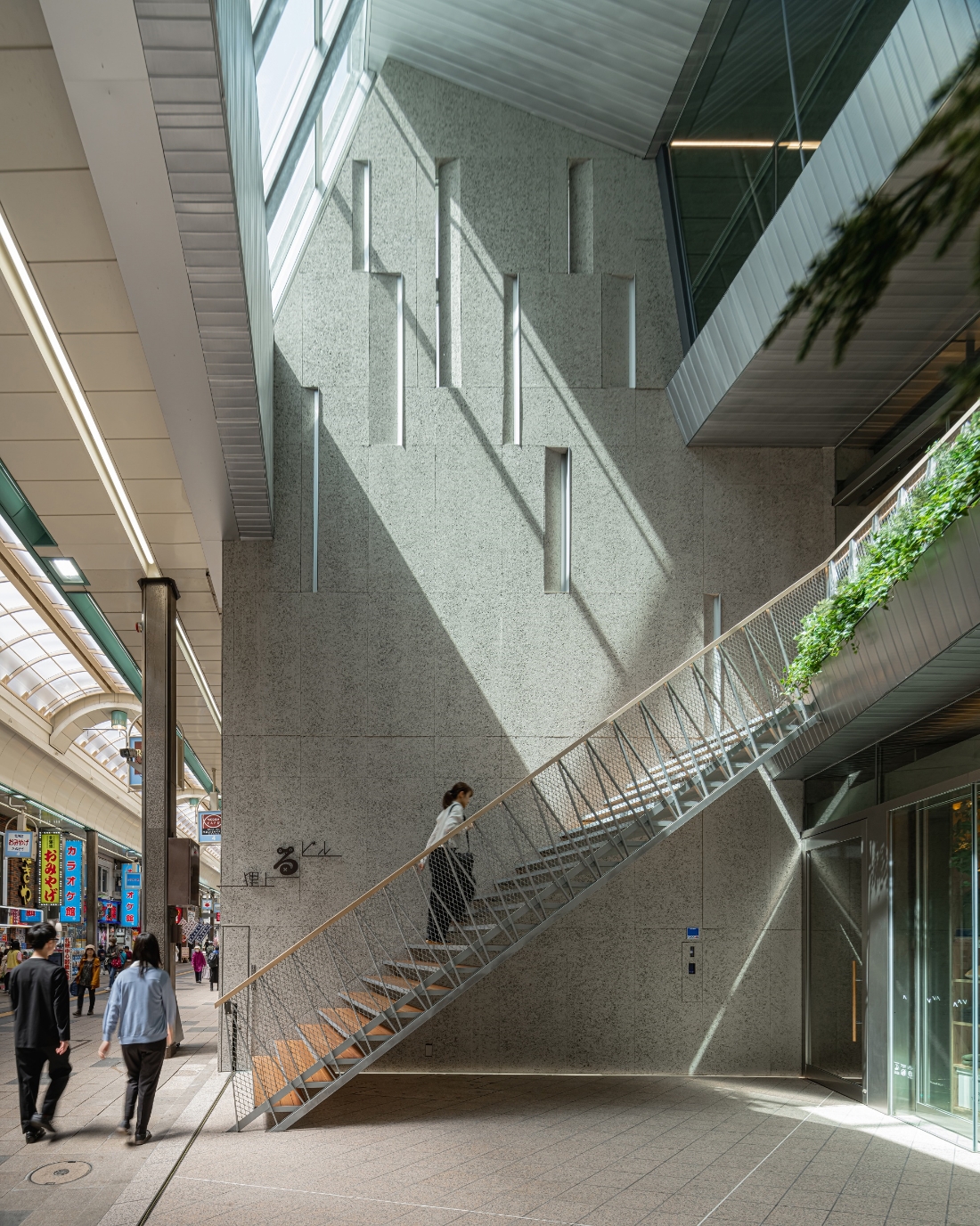 自然光と街の賑わいを引き込む、建物とアーケードの新しい繋がり方