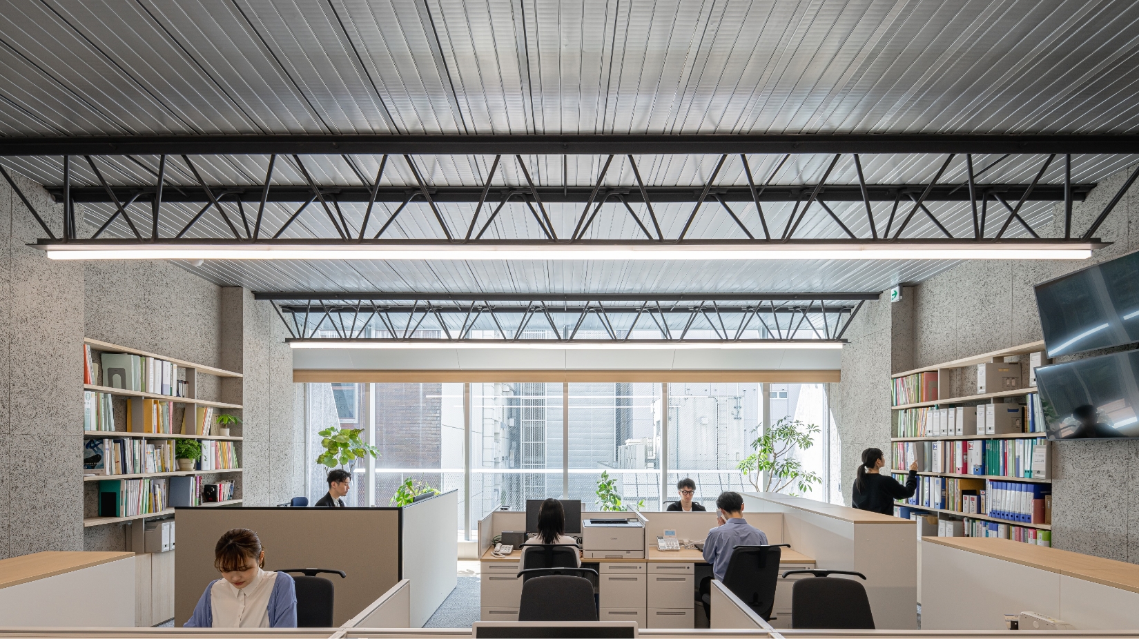 施工時の設えをそのままインテリアに現した事務所空間