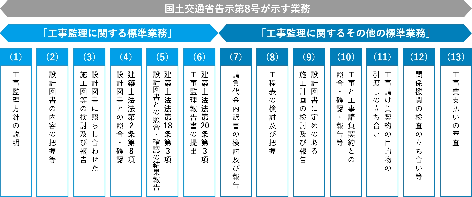 竹中工務店の監理業務は、国土交通省告示第8号に準拠して行うこととしております。