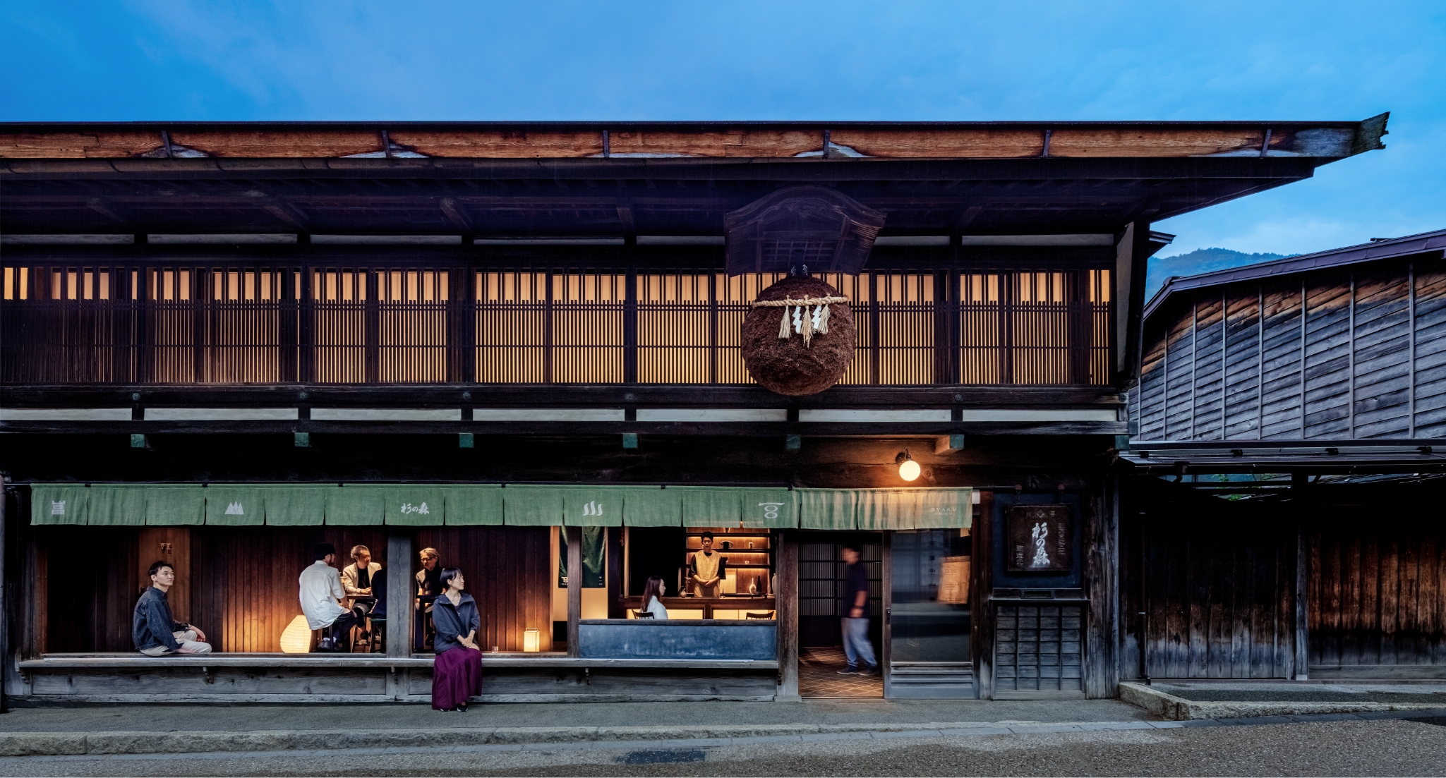 歳吉屋 -BYAKU Narai- は、8つの客室を持つ宿泊施設・レストラン・バー・温浴施設・酒蔵を擁する小規模複合施設です。長野県奈良井宿の古民家「杉の森酒造」(屋号は歳吉屋(としよしや))を改修し、再生しました。