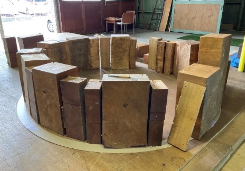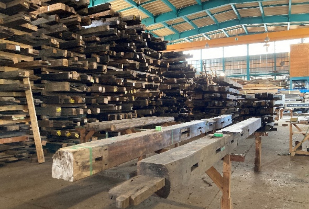旧中⽇劇場で使⽤されていた⽊の無垢材