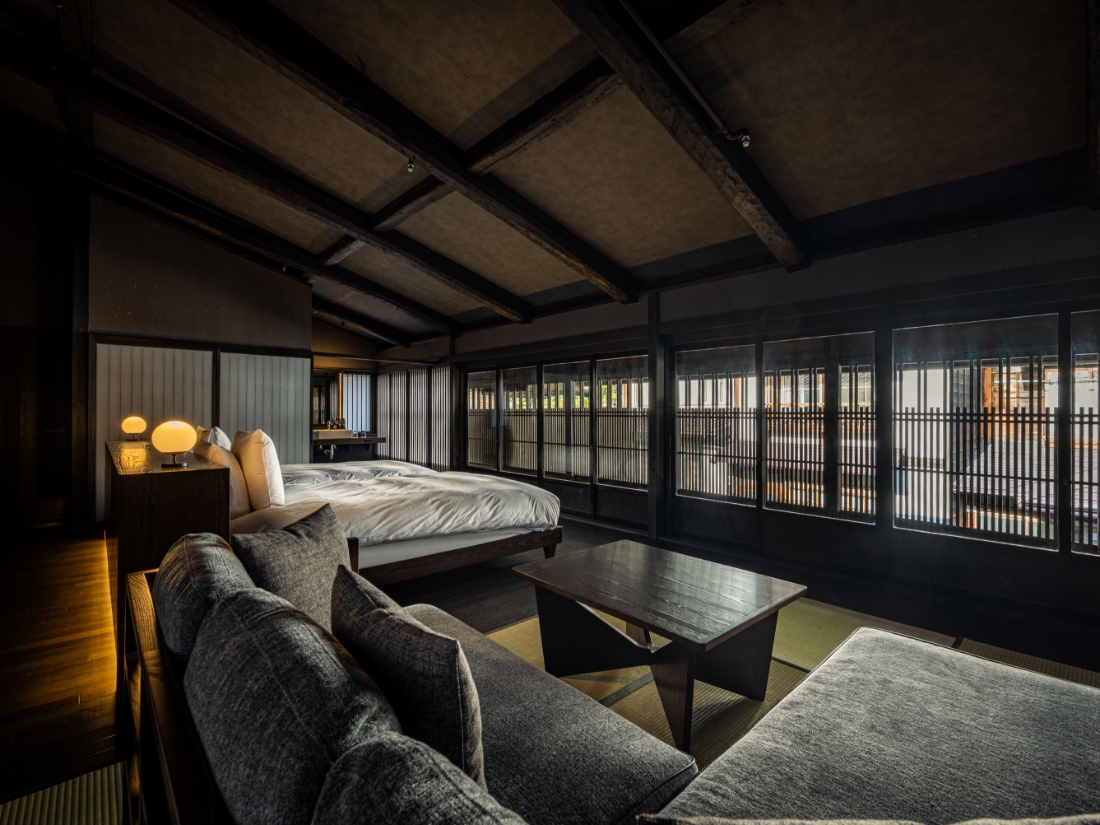 合わせ、ハレ/ケ、ミセ/オクなどの⽂脈を読み解き客室8室すべてに異なるテーマを設定した。外観や構造体の