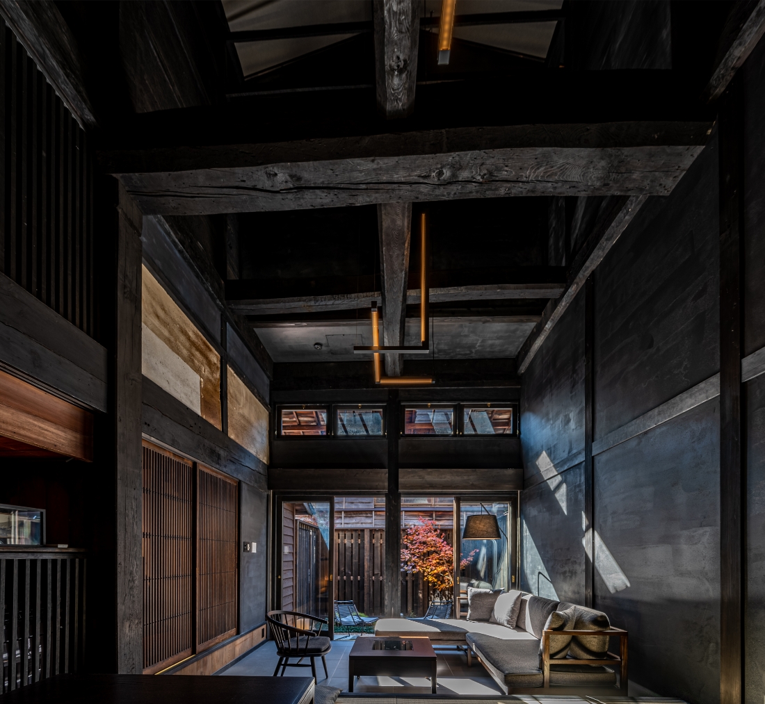 どの⼯芸を各所に使⽤し、宿泊や飲⾷を通して深く地域や歴史に触れ発信する場として新鮮な驚きや発⾒がある空