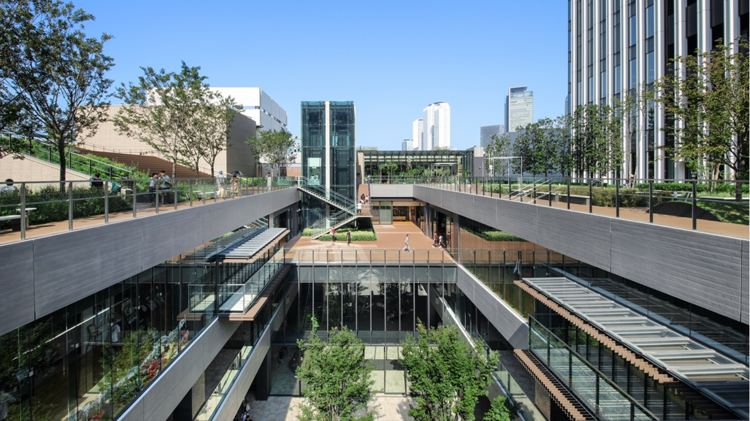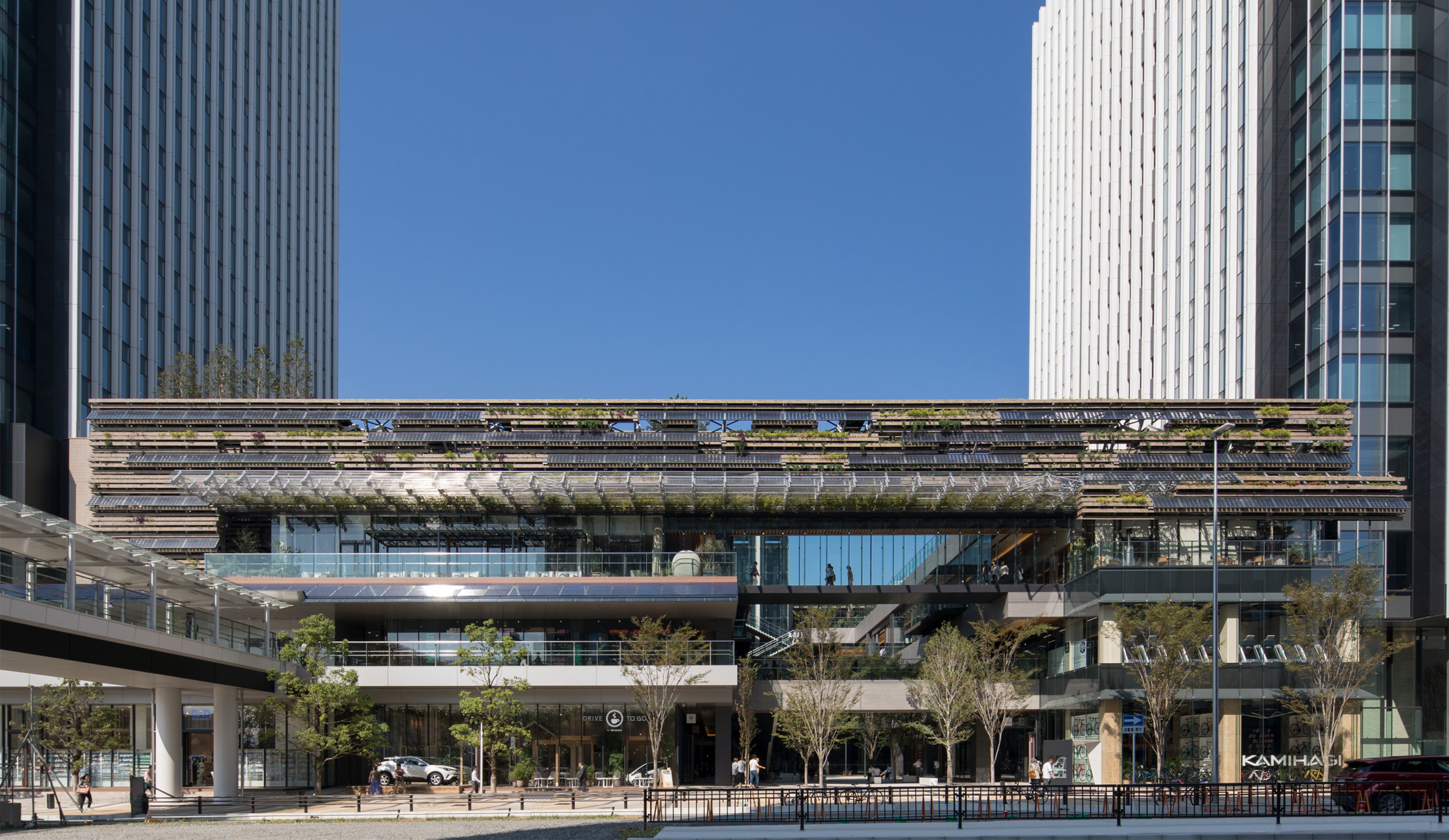 初代名古屋駅が置かれ、名古屋の玄関口であったこのエリアは、中川運河の再生とともに国際交流と環境配慮を掲げる「ささしまライブ24地区」として生まれ変わった。グローバルゲートは、ツインタワーの足元に緑溢れる商業施設を配した地区の中核施設である。入江状に外部を貫入させて広場を生み、ケヤキの街路樹を内へ引き込むことで立体的な路面店群を形成した。人の流れを「第2の大地」である屋上まで連続させ、散策体験による溜りと賑わいを創出している。