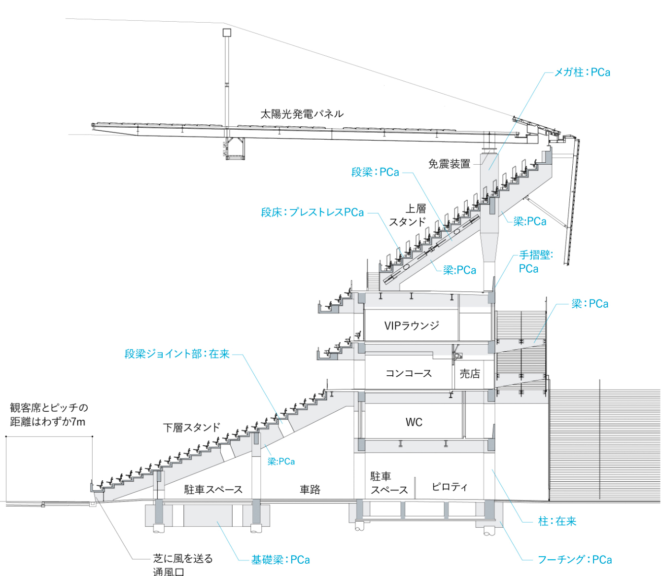 Jリーグ・ガンバ大阪の本拠地となるサッカー専用競技場。「寄付金でつくる日本初のスタジアム」として建設された。全面を屋根で覆われた4万の観客席や、日本最大のVIPエリアを有し、細部にわたりスタジアムの国際基準を満たしている。大規模建築のコンパクトネスを追求することで、建設と維持にかかるエネルギーを縮減しながら、臨場感あふれる劇場的な観戦環境を実現しており、サッカービジネスの持続的発展のためのモデルケースとなることを目指した。