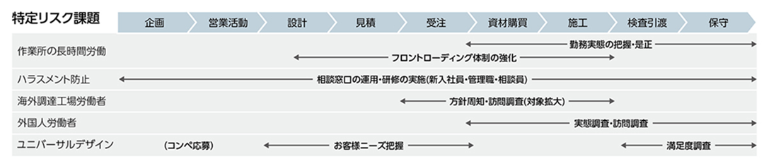当社は、2018年に人権方針を制定後、社外有識者の助言等も踏まえ、リスクを特定・評価し、5つのハイリスク課題に取り組んでいます。