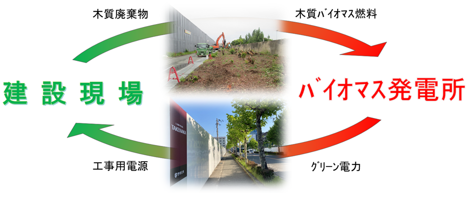 「伐採材によるグリーン電力の自ら利用」竹中土木