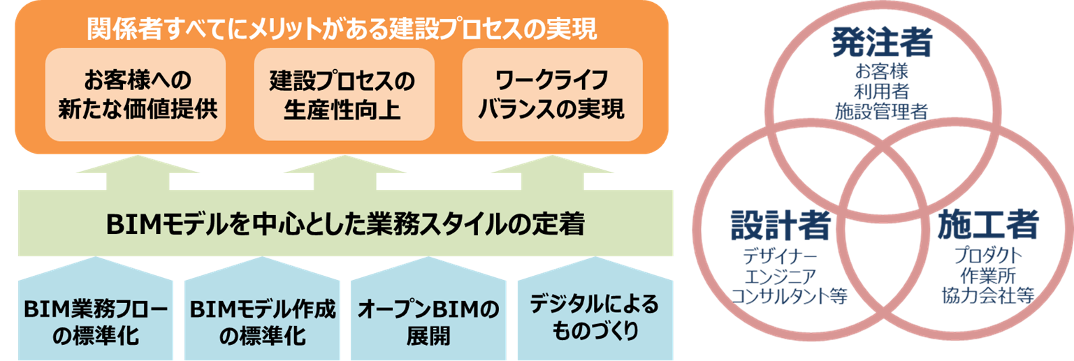 建設業では少子高齢化に伴う担い手不足が深刻化しており、労働生産性向上は喫緊の課題となっています。BIM活用の推進を図り、設計・施工から維持管理に至る一連のプロセスのデジタル化を進めることにより、抜本的な労働生産性の向上を実現したいと考えています。