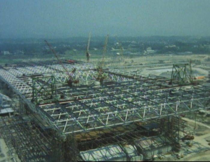 ではここから「EXPO′70の記録と記憶」の本題に入りたいと思います。第1回目は「全体概要と竹中工務店の関わり」です。映像タイトル「創造の空間」のプロローグに相応しいものが選ばれたのでしょうか、怪獣でも現れそうな冒頭の音楽が特徴的です。この映像を眺めているだけで1970年当時の経済動向、建設業における企業環境、また会場の規模感やそこに集まる人々の多様性、などが臨場感を伴って伝わってきます。余計な説明など、不要です。是非、ご覧ください。