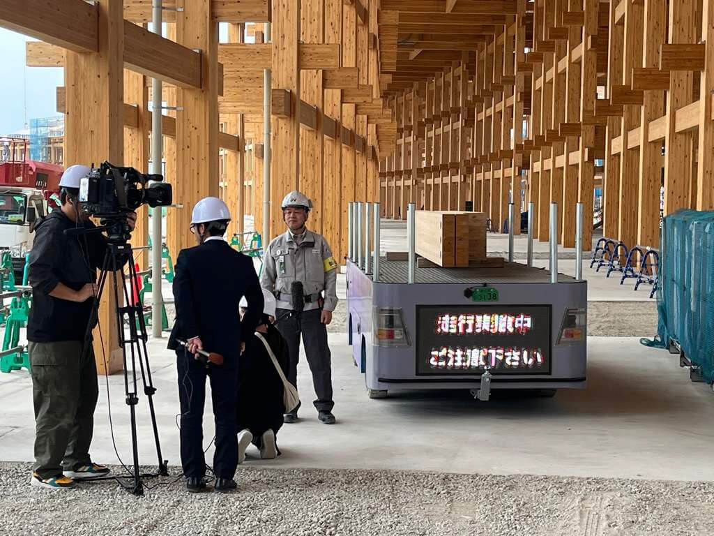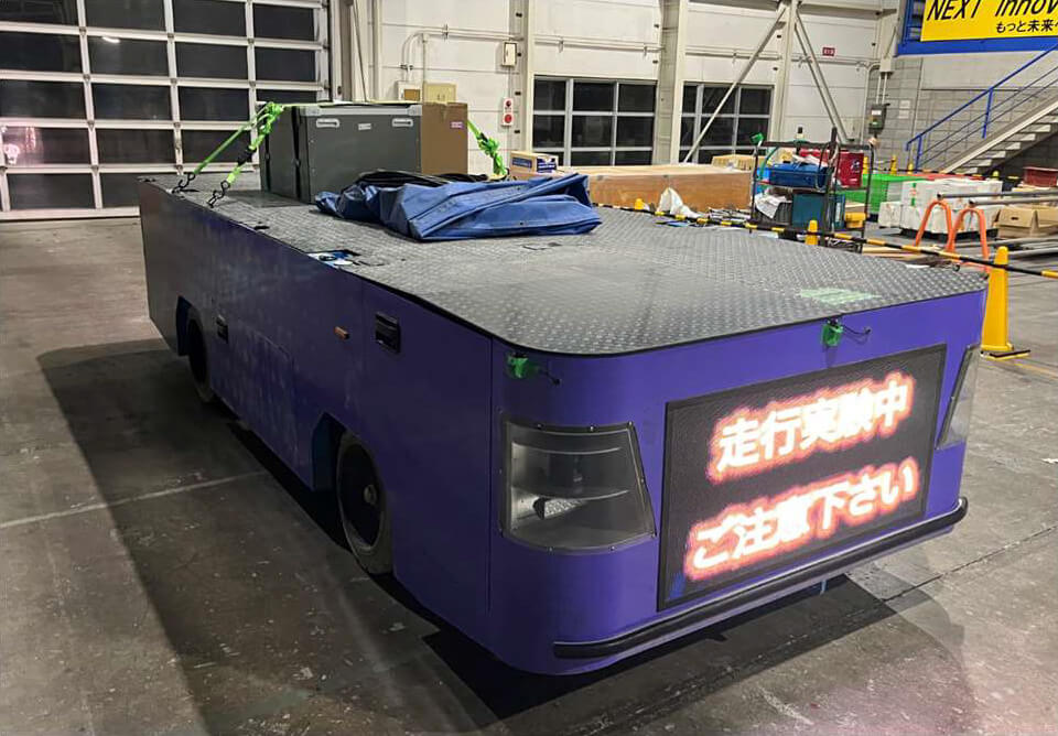資材を積み込み作業所内を自動で運搬することで、省人化や作業員の疲労低減につながります。また、後ろに台車やモバイルハウスをけん引することも可能であり、一度に大量の資材を運搬することが可能です。