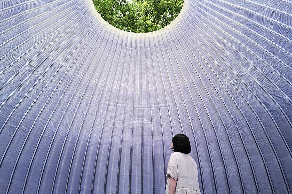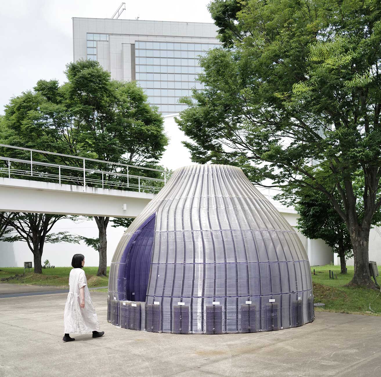 万博では、来場者が休憩に使える仮設建築物として提供。丸っこくてやさしい形が特徴です。