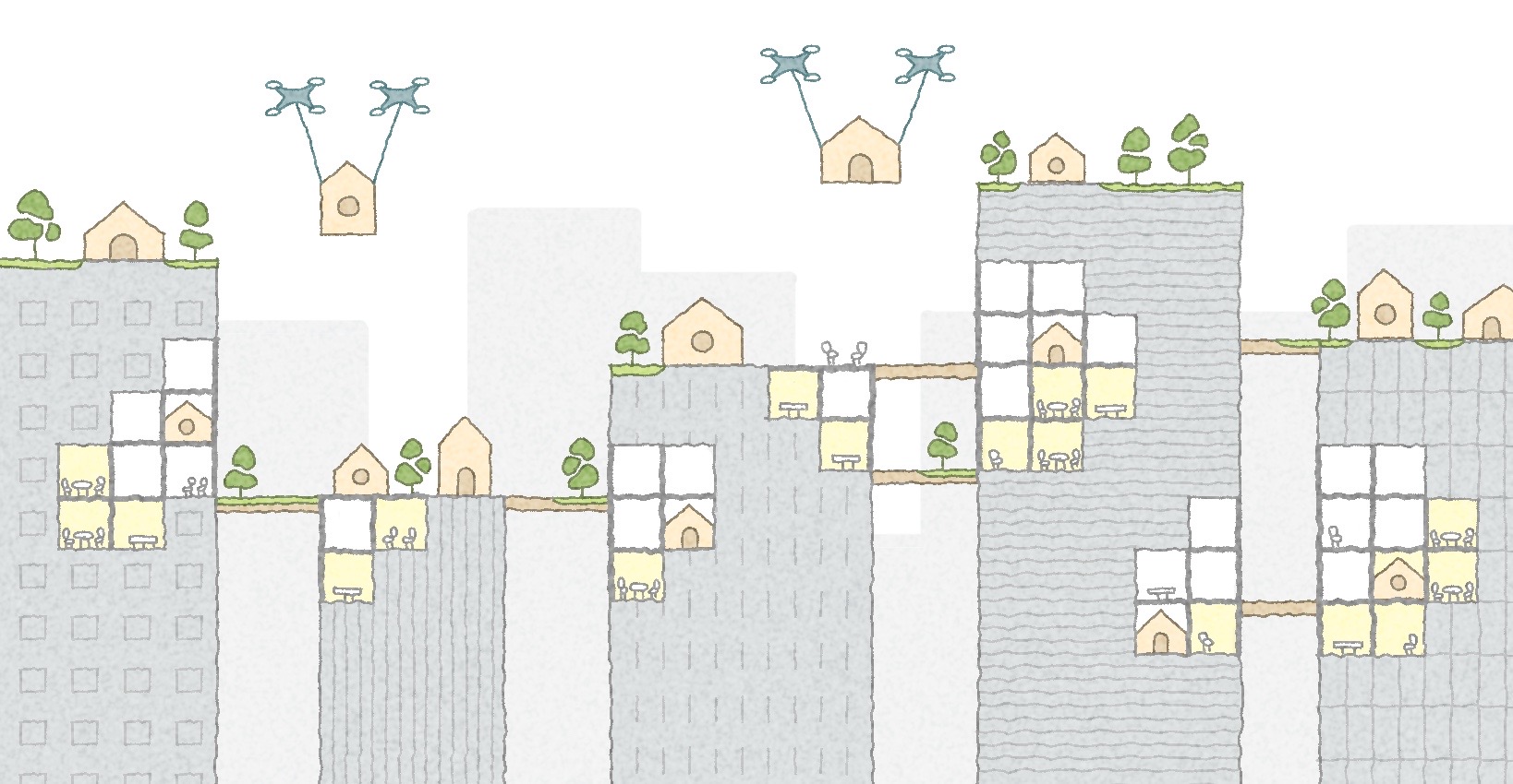 そしてそう遠くない将来、それらの空飛ぶ車やドローンのような空中インフラの発達により、空を起点に都市や建築が大きく姿を変えることが予想されます。