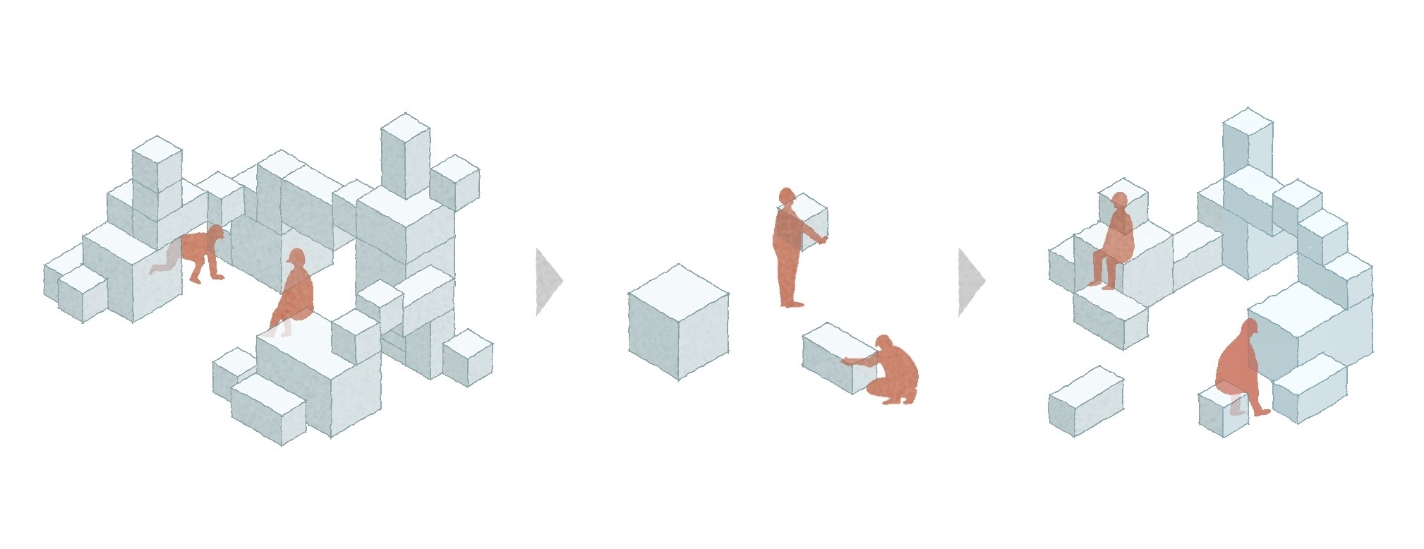 展示期間終了後、展示ブロックは解体され、それぞれパーツとなります。