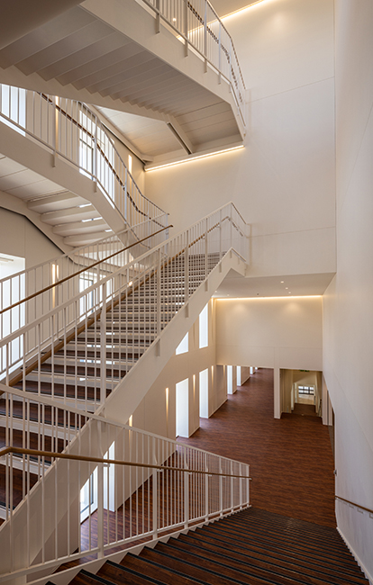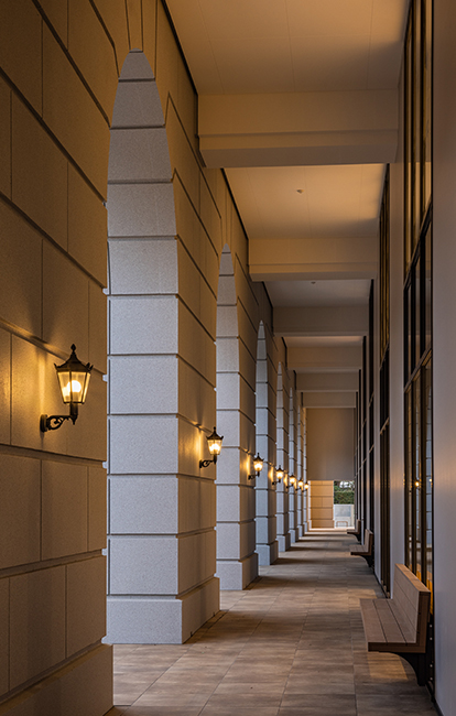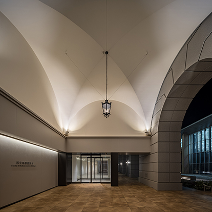 周囲に広がる武蔵野の森を取り込み、自然豊かな中で快適な医学教育の場を生み出しました。医学という歴史ある学問の時間の積み重ねを表現するにふさわしい建築として古典様式を参照しながら、PCやカーテンウォールといった現代の工法によって具現化しました。今後のニーズに応じて、多様な用途に容易に変更できるフレキシブルな平面プラン・設備計画としています。