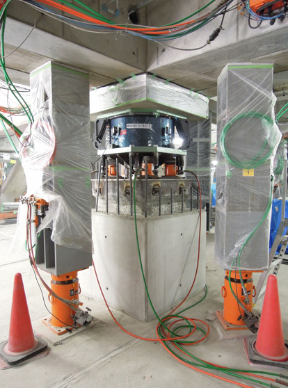 築約40年の東京都「江東区役所本庁舎」の免震化プロジェクトです。最大の課題は『区庁舎の機能を止めずにいかに工事するか』ということでした。新たに開発した「免震装置プレロード工法」を用いることで、小さな工事エリアを移動しながら免震化工事を実施しました。液状化対策についても新たに開発した「コンパクト・ジオラティス工法」を用い、免震化工事と並行して実施しています。