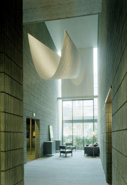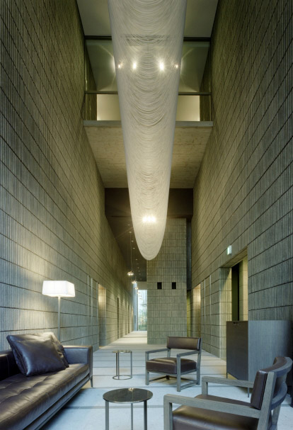 中庭、吹抜け等を積極的に取り入れ、プライバシーを確保しつつも開放性の高い居住環境を目指した都市型集合住宅です。幾何学形体を基にしたシンメトリー配置のかたちは、街並みの調和と品格ある風景を与えることを目指しています。建物中央部を貫通するロビー空間は、キャニオンのような大きな空間を内包し、外部の緑地環境を取り込んだ「視線が通り抜ける街路のような風景」を創り出し、都市の新たな風景の創出を企図しています。