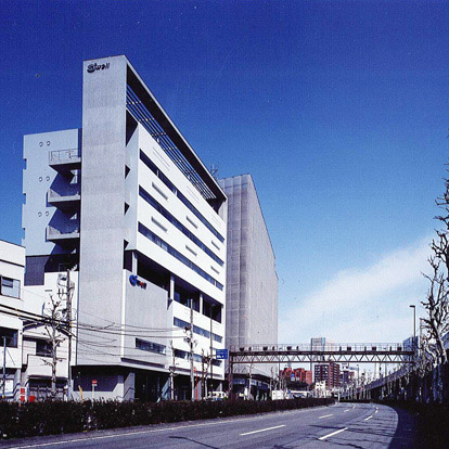 第一京浜に面する総合塗料商社の新社屋です。立地を生かして「都市・企業・人」の交差する拠点=CROSS GATEをデザインテーマとしました。約31m角の浮遊するフレーム内に機能を表出した3つのボリュームを組み合わせて構成し、中間階には品川神社の緑を取り込むコミュニケーションスペースを設けました。オフィス空間はボイドスラブと床吹空調による直天井として、積極的に自然通風を採用した省エネルギー型のビルを目指しました。