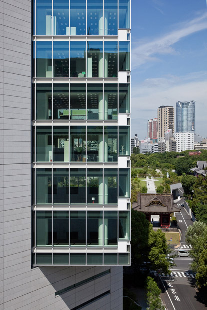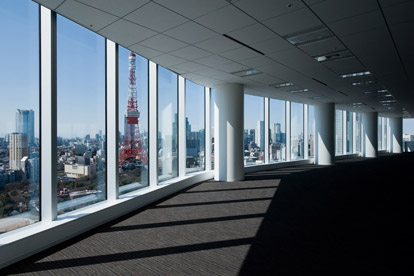 東京・港区の都立公園に隣接して計画されたオフィスビルです。都心のパークサイドという立地から、公園/都市の境界を表現するデザインとオフィス空間の快適さの両立を目指しました。公園と一体となる広場状空地や歩道状空地を整備し、都市環境の改善に寄与しつつ、都市景観における高いランドマーク性を獲得し、緑豊かで快適な高層ビルを実現しました。