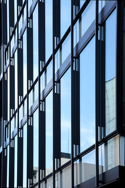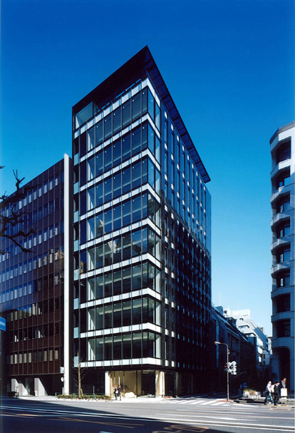 東京・神田の本社ビル兼テナントビルです。敷地の歴史的背景から、江戸城の基調である漆黒と純白のコントラストをテーマとした品格のある佇まいを、素材の質感を大切に構成しました。整形でフレキシブルな平面計画は、小規模ながら高効率で様々なニーズに対応します。環境との接点を重視し、自然の風・光を採り入れ、緑化された屋上からは東京の多様な風景を見晴らせるなど、都心立地を最大限に活かしたオフィスです。