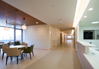 六本木ヒルズに面して建つ循環器専門病院です。ファサードにシャープな陰影を持たせ、街並みとの調和を図っています。北側のセットバックしたテラスを積極的に緑化し、大きなグリーンのステップを築いて、都市に潤いを与え、内部からもそれを享受できるように患者やスタッフのアメニティ向上を図っています。各階のプランは合理性を追求しながらも、患者が光や緑に包まれ、安心感や優しさを感じることができる空間創りを行っています。