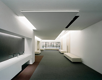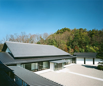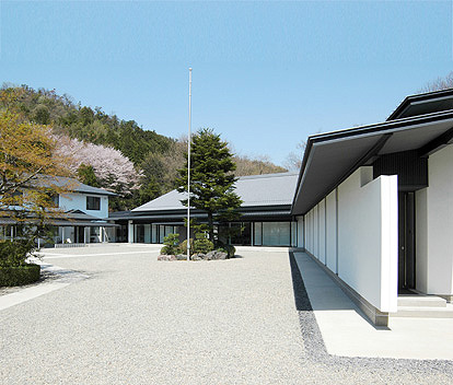 山に囲まれた自然豊かな敷地に佇む静かな講堂です。瓦屋根と漆喰壁の旧講堂の記憶を継承し、折り重なる屋根と深い軒の陰影が中央の広場を取り囲み、自然と調和した落ち着きと安心感のある修行の空間を形成しています。既存棟をつなぐ列柱の回廊、ガラス面で広場に開いた講堂、プライバシーのために白壁を配した宿泊棟と、広場に対する関係を少しずつ変え、縦のリズムで連続させることで、広場に格式のある表情を持たせています。