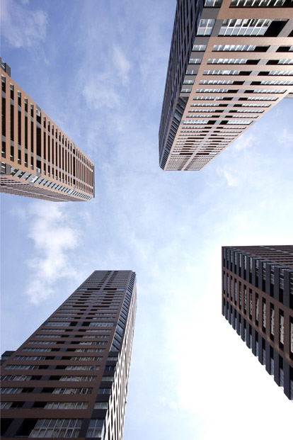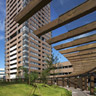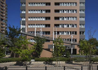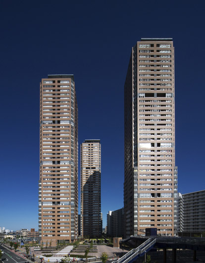 1,163戸からなる住戸は、敷地中央の4棟のタワーと南側足元の3棟の板状棟に配置しました。縦横にバランス良く積層することで、他者を意識しながらも気にならない「個と戸の寄り良い距離間」、集まって住むことで共有できる環境の多様さを生みだしました。オープンスペースには四季折々の樹木・草花・水庭を配置することで、五感で感じる空間としています。