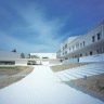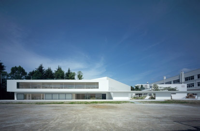大学の体育館とカフェテリアの施設です。既存の本館・図書館の一部も併せてリニューアルされました。① 体育館は、外部と一続きとなるような開放性をもたせる② 新たな構築物全体を白い「面」で構成し、内部・半外部・外部の空間をゆるやかにつなげるという2つのアプローチにより、敷地全体を学生の広場としています。