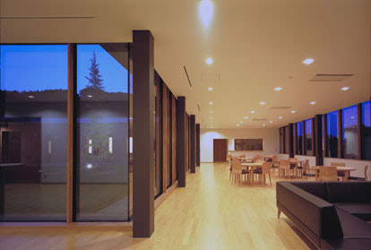 北海道三笠市郊外に建つ免疫研究所に併設されたセミナーハウスです。設計にあたっては北海道の気候風土を最大限に活かした自然エネルギー利用を図りたいという建築主の深い思いを受け、風土性を象徴するデザイン表現や寒冷地における環境配慮技術に加え、構造杭から熱を採る地中採熱による輻射冷暖房に挑戦しました。約15mの構造杭の中に採熱管を通し不凍液を循環させて地中熱エネルギーを空調エネルギーに変換させようというものです。