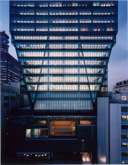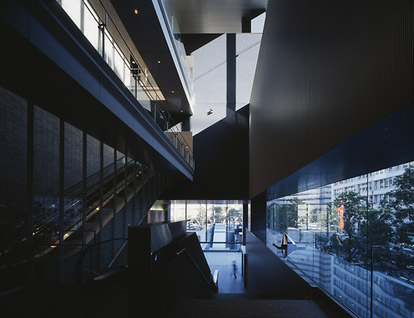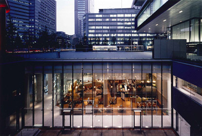 大手町の中心に位置するオフィスの、既存3棟の段階的建替計画です。高層部は稼動する東側本館に跳ね出して建設されたため、凹型本館ネガ立体をダイナミックな架構で支える形態となりました。この形態が生み出す超高層の足元の隅間を縫って、低層部に文化ゾーン、メトロスクエア、公開空地が緩やかに連帯した立体広場を構成しました。メトロスクエアは南北ふたつのライトコートを形成し自然光と風を取込み、地下を感じさせない開放感を実現しました。