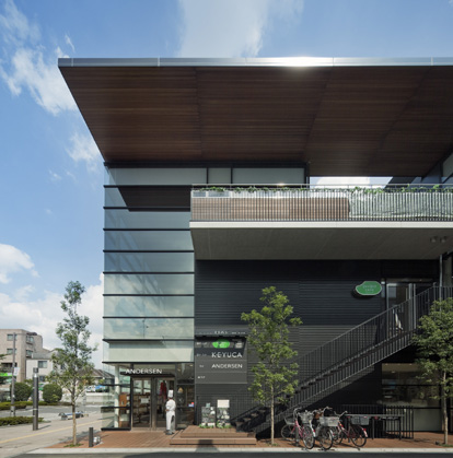 仙川駅前広場に面して建つテナント商業ビルです。街並みに対して、公共性の高い外部空間をつくり込み、商業建築として、駅前広場からの人の流れを積極的に引き寄せる開放的な構成としています。