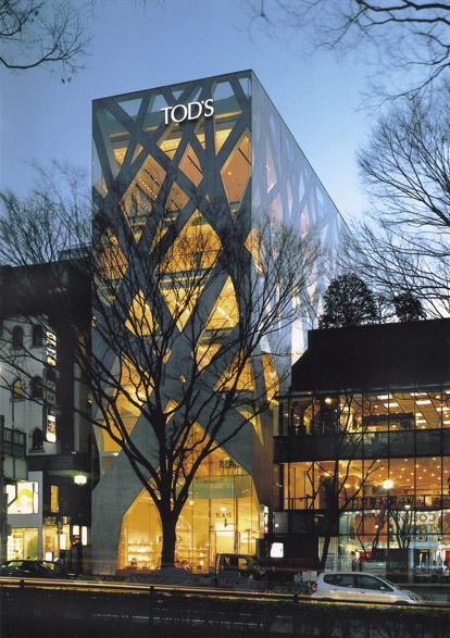 イタリアのブランド「TOD'S」社の日本市場本格参入拠点となる旗艦店。表参道のシンボル・ケヤキを抽象化したコンクリートの構造フレームは、独特の物質感や力強さを表現しています。RCに象嵌された約270箇所のガラス開口は全て形状が異なり、内外仕上面と同面にサッシュレスで取付けられています。特異な形状の外壁を高い生産性・精度で施工するため、モックアップによる事前検証や特殊な工法・手順など様々な工夫を行いました。