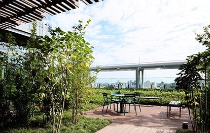 敷地は寛永寺の黒門に由来する旧黒門町、伝統文化の上野、新興文化の秋葉原といった特徴的なエリアの結節点にあたる場所です。中央通に面し、通りの軸性を受け止める視認性の高い場所に建つ本建物は、立地特性を活かし、地域のアイデンティティを持たせた賑わいや緑を創出しています。 様々な環境技術の採用により、CASBEE-SとLEED-CSプラチナのW認証を取得し、テナント誘致競争力の高いオフィスビルとしています。