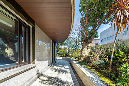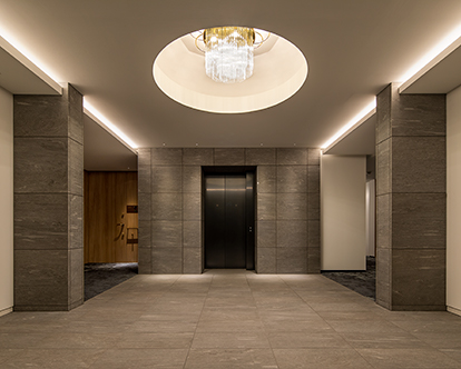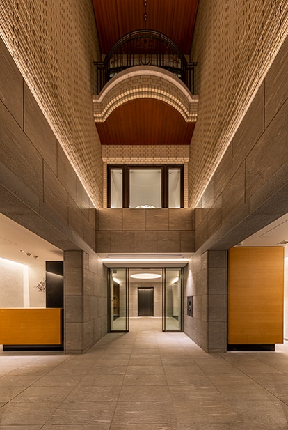 1984年当社施工の賃貸集合住宅を保存改修+増築によって再構築した計画です。重厚なディテールや素材を最大限保存しながら、既存棟では耐用年数を再評価する当社独自技術の開発によって躯体価値を明確化し、設備全改修、カバー工法を用いた擁壁補強とデザイン、3層吹抜エントランホールの挿入など、新たな機能を付加しています。新設された増築棟と共に、建物全体の価値を向上し次世代に受け継がれる住宅として再生しました。