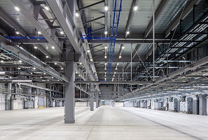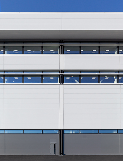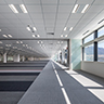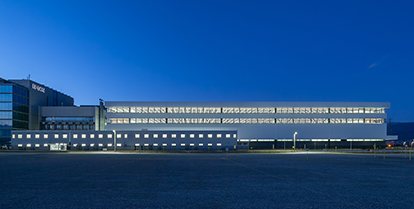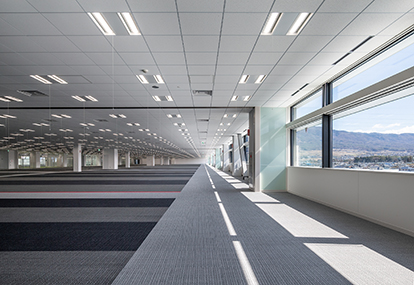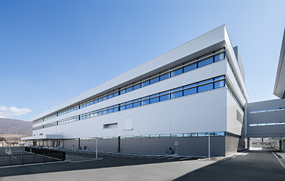 新規事業の拠点となる生産研究施設です。東西147m南北70m、10,000㎡の最大平面を確保、柱スパンの最大化、建築・設備のモデュール化などにより汎用性を高め、事業環境変化による将来の用途変更にも備えています。大空間の生産エリアは成層空調によって快適性と省エネルギーを両立しました。横長の窓を全周に廻し、建物の内部深くまで外部が感じられる快適な研究空間としています。