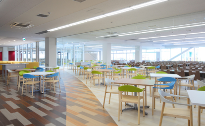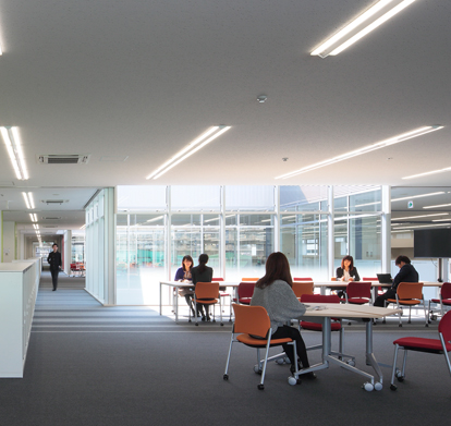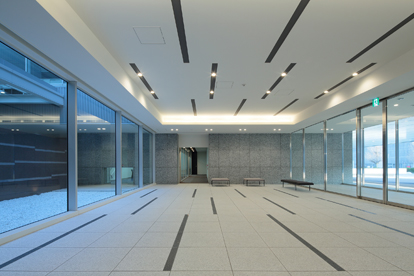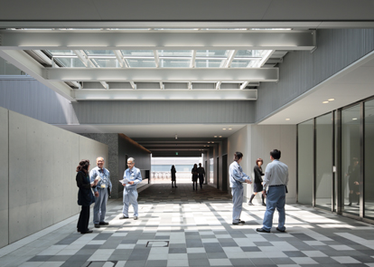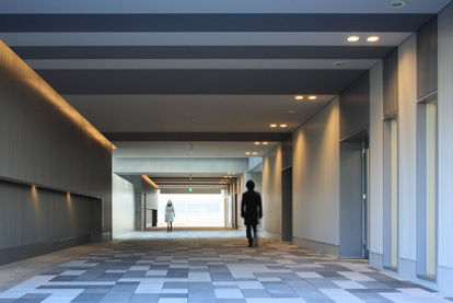 点在する事務所や食堂等を集約した、事業所再構築計画の核となる厚生施設です。新たに創ったL型モチーフを建物内外に展開し、固有の表情を持つ事業所の顔を創出しました。直交軸で構成されたマスタープランにならい、2つの直交する通りを建物内に貫通させ、賑いや交流を誘発させています。またかつての風景や中世道路遺構を再生する等、地歴との対話から生まれたデザインにより、本館としてのアイデンティティを持たせています。