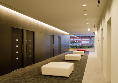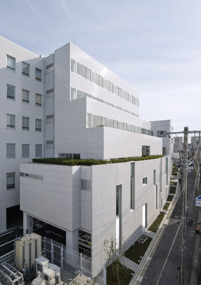 千葉県銚子市に建つ、総合病院の増築計画です。今回の計画は2001年からスタートした3期に渡る新棟計画の最終章です。新C棟では自費診療を主体とする健診・産科病棟の強化という命題に対し、病院のブランドイメージを発信する建築デザインが求められました。周辺の街並みと呼応したリズミカルなファサードデザインが内部空間にも展開され、全体的に白と黒をベースにした落ち着いた色調に柔らかい間接光を組合せ、高級感と賑わいが併存する、新しい病院空間を目指しています。