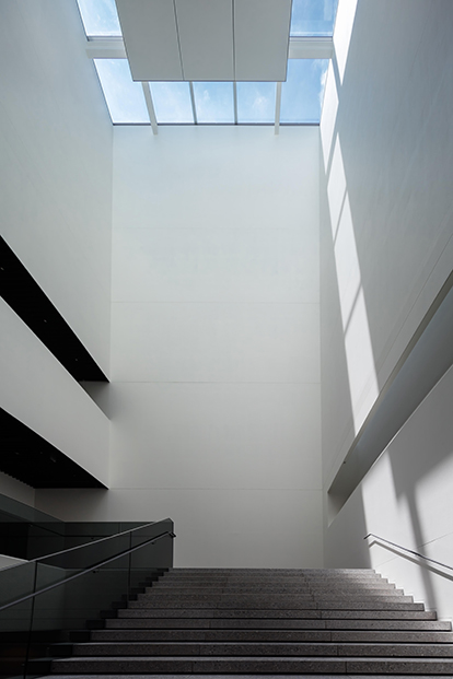 600人収容の集会施設と、聖堂の計画です。周辺建物が近接して建つ市街地のため、スカイライトを用いて内部に自然を効果的に取り込む計画としました。建物の中心には、空に開いた高さ25mの吹抜けを設け、最上階の聖堂は、壁面の再生ガラスを通して自然を取り込みます。時間の流れや自然の移ろいを穏やかに映し出す、抽象性の高い空間とすることを意図しました。