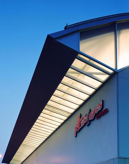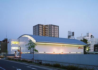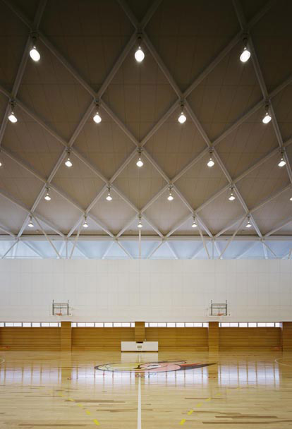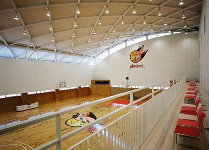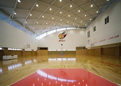 この体育館はバスケットボール女子日本リーグに参加するチームのホームコートとして計画されました。緩やかに湾曲した局面屋根が最大の特徴で、洗練した形で採光や換気用の開口を軒先に組み込みアリーナの室内環境の確保とデザイン性を両立させています。計画当初から3次元CADを活用し鉄骨製作の工作機械のデータとして活用することで極めて高い施工精度を確保しました。
