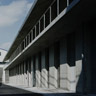 建築主は全日空グループの航空機整備会社で、社員食堂・倉庫・整備室が一体となった計画です。「事業再編を睨んだ将来変更に対応する柔軟性」が求められ、外廊下型プラン・構造体と開口部が1.8mピッチで反復する外壁・フラットスラブで "フレキシブルなRC造" を実現しました。一方で、屋根部分は 四周RC造ボールト屋根+鉄骨キール梁+鉄骨母屋+国産杉板の間伐材というハイブリッドの構成とし、RC・S・木という異種素材が1.8mピッチで取合う、ユニークな空間を目指しました。