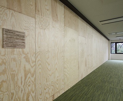 耐震補強に、LVL(単層積層材)の木造耐震壁を設置すると共に、教室のRC壁をガラス間仕切へ変更し、学生のキャンパス活動の見える化と、自然光が入るオープンで心地よい空間を実現しました。また、LVL木造耐震壁を現し仕上げとする他、LVLの内装やサイン等により、校舎全体で木に守られた校舎を表現し、女子大らしい温かみのある木の香る空間をつくりました。